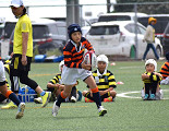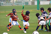 新門司グランドにて開催された北九州ラグビー祭に小2はA,Bの2チームで参加しました。午前中は天然芝のグランドで予選リーグ、午後は人工芝グランドで順位決定戦と、A,Bそれぞれ4試合行いました。 アタックでは走りながらパスをもらい果敢に前に進む姿があり、ディフェンスではラインを作って相手のタグを取ろうとする姿がかっこよかったです。 このようなラグビーの機会を作っていただき、北九州ラグビー協会の皆様に感謝申し上げます。ありがとうございました。 |