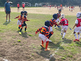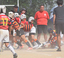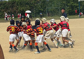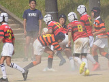 厳しい暑さの中、草ヶ江YRさんとの交歓会が行われました。 立ち上がりを意識し、タックル、オーバー、パス回しなど、積極的なプレーで得点を重ね、練習の成果が実感できるとても良い試合となりました。 2試合目は勝利しましたが、手だけでタックルにいったり、自分たちらしいプレーが出来ず、課題の残る試合となりました。 試合後コーチから、 練習で出来ていることが試合でも出来るようになってきている。 気持ちで負けないようにすること。 もっと声を出して、ディフェンスの際しっかり前に出る。 勇気を持ってタックルにいこう。 と言葉をいただきました。 5年生大会に向けてしっかり練習を積み重ね、チームの皆が大きく成長していく姿を応援していきたいと思います。 草ヶ江YRの皆様、早朝より遠方からお越しいただきありがとうございました。 |