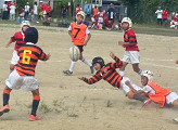 残暑の中、草ヶ江YRさんとの交歓会が鞘ヶ谷グラウンドで行われました。 最初子どもたちのエンジンは掛かっていませんでしたが、コーチから「勝つためには前に出ること、ラインを作ること、広がること、そして楽しむこと」と言われ、実行に移すと次第に結果が出てきました。少しずつ成長が見え今後が楽しみです。 草ヶ江YRの皆様、早朝から北九州まで遠征していただき本当にありがとうございました。 |