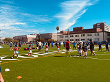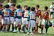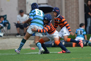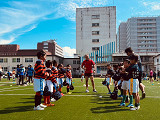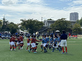 残暑厳しい中、りんどうYRとの交歓会が行われました。 試合では、相手の素早く激しいラックへの入りに苦しめられましたが、フォワードの縦への推進力、バックスの外への展開など、一人一人が自分の役割を果たしながらプレーすることを頑張りました。 試合後にはコーチから「反応スピードをあげること」「やらされるラグビーではなく考えるラグビーをすること」「5年生に向けて苦手なプレーに挑戦すること」に取り組もうと話をしていただきました。チームとして成長できるよう、今後一人一人が考えながら練習に取り組んで欲しいです。 最後になりましたが、会場準備等をしてくださった、りんどうYRさん、ご対応ありがとうございました。 |