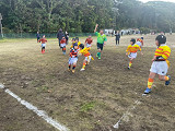 寒空の中前日の雨の為グランドのコンディションは、あまりいい状態ではなかったですが子供達全員元気良く試合を行いました。 試合前にコーチからタグを取られたら周りの人が素早くボールを貰いに行く事を意識する。子供達はそれぞれがコーチからのアドバイスを頂いた事を精一杯意識してプレーを行いました。 子供達全員最後まで諦めず一生懸命にやってる姿を見て成長を感じました。次の試合でも楽しく一生懸命に頑張って下さい。 筑紫丘の皆様朝早くから遠い所からお越しくださり有難うございました。 |
