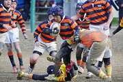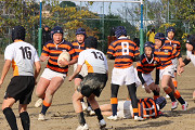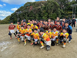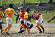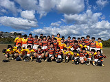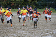 前夜の雨の影響でグラウンドコンディションが悪い中、筑紫丘RCJSさんとの交歓会が行われました。 全身泥まみれになりながらも必死にボールを追いかけ、激しいボールの争奪戦を繰り広げました。 前週の試合で課題となっていたオフェンス時のライン形成と外へ展開する意識を持つ点について、良くなったところもあり、トライに結びつく場面が見られました。また、選手それぞれの頑張りや成長が感じられた良い試合になりました。 一方で、ハンドリングミスやディフェンス時に揃って前に出ていないなど課題も残りました。日々の練習を積み重ねて、これらの課題を一つひとつ改善し成長を続けていきましょう。 最後になりましたが、筑紫丘RCJSの皆様、足元が悪い中、朝早くからお越し頂きまして、誠にありがとうございました。 |
