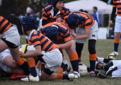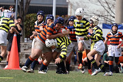 【A2ブロック】 優勝前夜から降り続く雨の中行われた大会2日目。 1戦目の筑紫丘戦では、パスはよく繋がったものの、タックルに課題が残る試合となりました。 帆柱さんとの最終戦では、1試合目の反省を意識し、体を当てるタックルや、粘り強いオーバーを全員が心掛ける事ができていたように感じます。 そして、今年の夏合宿では『声をだすのが恥ずかしい』と言っていた子供達が、しっかりと声を出し、自分の役割を果たしながら互いをフォローし、トライが決まると称え合い、流れが変わろうとする局面では自分達で立て直そうとミーティングをする姿があり、チームが1つになっていると感じられる驚く程成長した姿を見せてくれました。 練習相手になっていただいた6年生やOBOGの皆様、たくさんの声援をくれたスクール関係者の皆様、大会開催にご尽力頂いた関係者の皆様、切磋琢磨し、常に刺激と課題を与えてくれる他チームの皆様に心より御礼申し上げます。 ありがとうございました。 |
