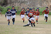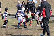 好天に恵まれた中、中鶴少年ラグビークラブさんとの試合が開催されました。 1年生最後の試合、人数が少なかった為鞘ヶ谷対中鶴さんとの混合チームでの開催でしたが、とても良い試合ができました。 試合中にパスが増えたり、前に比べ全員でのディフェンスができる様になり、今回の試合で1人1人の成長が見られました。 1年間で培ったチームワークを活かし、2年生になっても仲間と共に成長していって欲しいと思います。 最後になりましたが、中鶴少年ラグビークラブの皆様、朝早くから会場準備等して頂きありがとうございました。 |