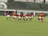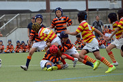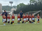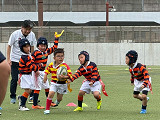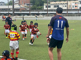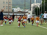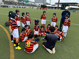 小雨入り混じる天候でしたが、お陰で暑さも和らぎ、ちょうど良いコンディションの中、長崎RSさんとの交歓会が行われました。 結果は1勝1敗。押しつ押されつの手に汗握る展開でした! コーチからは、「練習の成果が良く出ていた。ディフェンス面でも随所に光るプレーが見られた。」と褒めていただいた一方、「ミスをしても止まらず次のプレーを続けること。」「長崎RSさんの大きな声、タックルに対する意識の高さを見習おう。」などのアドバイスをいただきました。確かに、長崎RSさんのチーム一丸での「大きな声」は、こちらが攻め込んでいるにも関わらず優勢さを感じさせず、逆に押し込まれた際は、持ちこたえるのが難しい、良いお手本となるものでした。 2年ぶりの長崎訪問、車中での交流やお土産選び、お小遣いのやりくりなど、ラグビー以上に多くの貴重な体験もでき、子どもたちにとって楽しく有意義な週末となりました。 最後に、長崎RSの関係者の皆さま、本当にありがとうございました! |