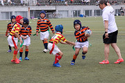 あいにくの曇り空でしたが、久しぶりの遠征試合に子供達は元気いっぱいでした。 AチームBチームに分かれ、それぞれ声を掛け合いながら長崎ラグビースクールの皆様との試合に臨みました。序盤は緊張気味でしたが、徐々に緊張がほぐれボールが繋がるようになりました。試合終了後にコーチより、ロングリリースは上達してきている。との言葉を頂きました。しかし、ボールをよく見て判断することやしっかりオーバーに入ることは、まだまだ課題が残るようです。『自分が主役』『自分に何ができるのか』を日々考え行動する。これからの目標です。 結びに長崎ラグビースクール関係者各位及びスクール生の皆様、早朝より会場整備等ご尽力頂きまして、ありがとうございました。また来年お会いできるのを楽しみにしております。 |