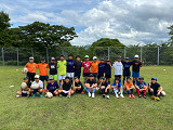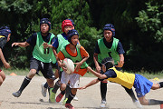2~3日目は「若松球技場」を借りての練習。太陽がギラギラ照りつける中、みんな汗をかきながらも集中力はバッチリ。休憩時間には「若松スイカ」をみんなで堪能。とても充実した練習ができました。 コーチからは、「今やっていることがもっと上手く出来るようになったら、ラグビーはもっともっと楽しくなるよ。良い練習ができているね!」と、うれしい言葉もいただきました! (夏休みの宿題は「体を動かすこと」と「縄跳びをがんばること」!毎日コツコツ続けて、さらにレベルアップしよう!) |