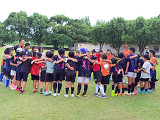 朝から照りつける太陽に負けず、朝は近くの公園まで散歩からスタートしました。 朝ごはんもしっかりみんなでいただき、練習準備や荷物片付けも自分のことは自分できちんとできました。 いつもの練習に加え、タイガーチーム?ドラゴンチームに分かれた紅白戦もあり、またお父さんお母さんチーム相手に白熱した戦いもありました! なかなかパス回しの早いお父さんお母さんチームに、笑顔もありつつ勝てない悔しさもにじませ、来年は勝つ!と意気込みも見せてくれました。 今回の合宿では、コーチや保護者の方々をはじめ、施設の方々など関係者のみなさま、差し入れをしてくださった他学年のみなさまに大変お世話になりました。 特に、3年生の清水コーチ、役員の方々には準備の段階から当日までご尽力いただき感謝いたします。 |