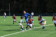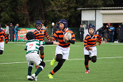 冷たい風が吹く寒さ厳しい冬空の下、伊都ヤングラガーズさんを迎えての交歓会でした。今回は交歓会に臨む前に個々に目標を決め、その目標達成のために健闘するようにコーチから指導いただいていました。 1試合目終了後、動きの鈍さとタックルの高さについてコーチより指摘を頂きました。本来、プレーの修正は互いに声を掛け合いプレー最中にすべきである。との激励でした。2試合目では個々の目標とコーチからの指導を頭に入れてプレーしていたようですが1試合目からそれが出来るようになるように!とのことでした。残り2か月で藤田組を卒業しジュニアチームへと進級します。今後12人のますますの成長を期待します。 結びに伊都ヤングラガーズの皆様、スクール生様の元気で明るい挨拶を頂戴し又、早朝よりお越しくださいましてありがとうございました。 |