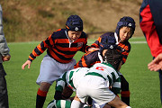 凍えるような寒さの中、伊都ヤングラガーズさんとの交歓会が行われました。 寒い中でも元気いっぱいの子どもたち。4対4での試合を時間の限り行い、両チーム積極的にトライを決めに行く姿が印象的でした。 両チームで一緒に、試合の合間に練習をしたり、試合後に輪になって体操をしたりと、参加者みんなでラグビーを楽しんだ交歓会となりました。 伊都ヤングラガーズの皆様、朝早くからお越しいただき、ありがとうございました。 |